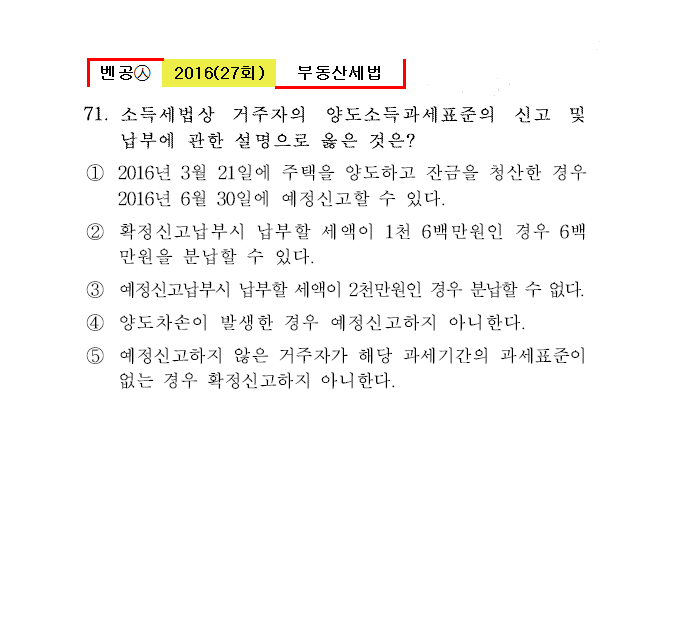 벤공㉦2016년 27회(65~72번) 세법*기출총정리