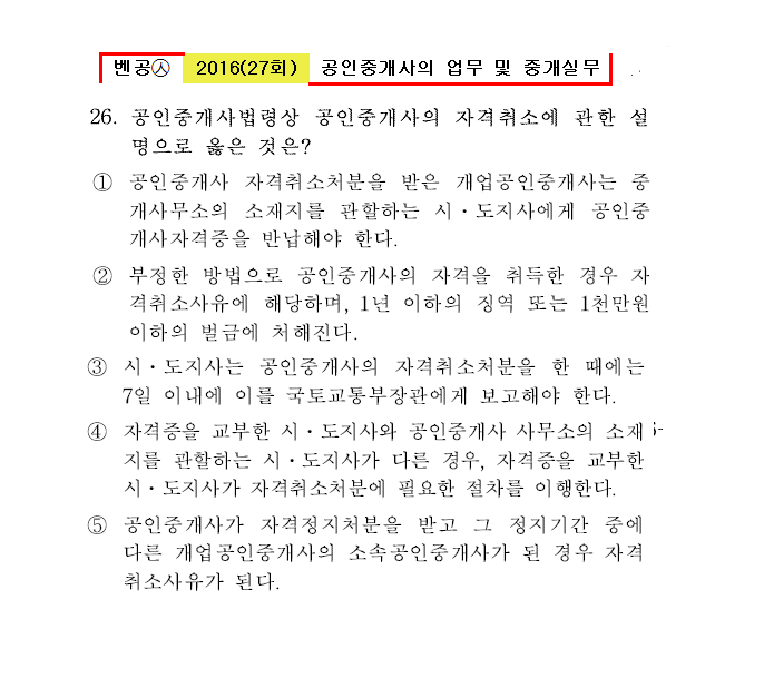 벤공㉦2016년 27회(21~30번) 중개사법*기출총정리