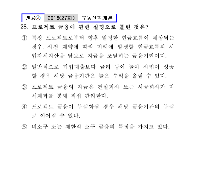 27회㉦28. 프로젝트 금융에 관한 설명으로 틀린 것은?
