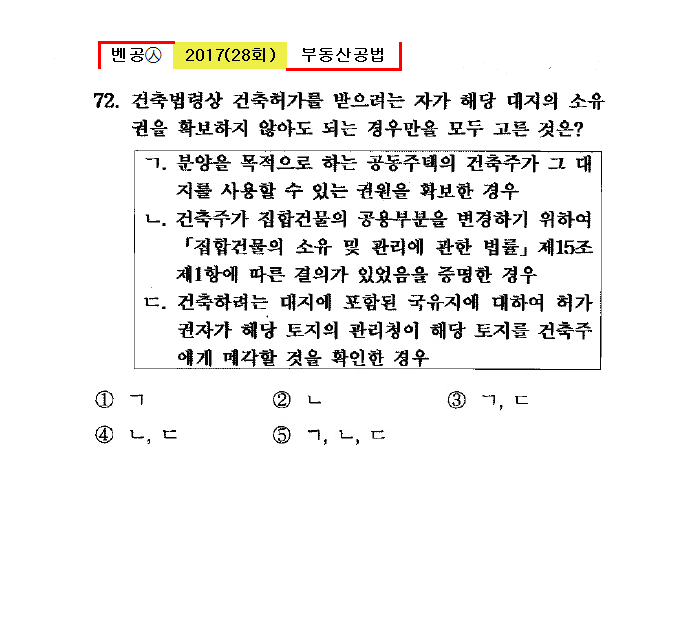 28회㉦72. 건축법령상 건축허가를 받으려는 자가 해당 대지의 소유권을 확보하지 않아도 되는 경우만을 모두 고른 것은?