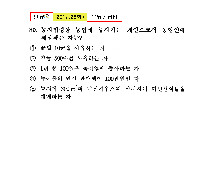 28회㉦80. 농지법령상 농업에 종사하는 개인으로서 농업인에 해당하는 자는?