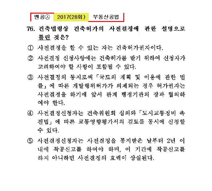 ⑤ 사전결정신청자는 사전결정을 통지받을 날부터 2년 이내에 착공신고를 하여야 하며, 이 기간에 착공신고를 하지 아니하면 사전결정의 효력이 상실된다.