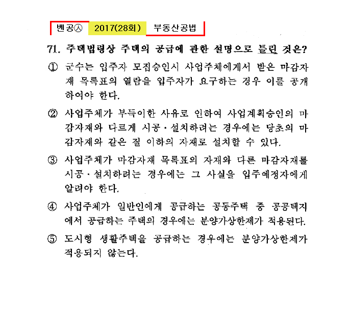 벤공㉦2017년 28회(71~80번) 공법*기출총정리