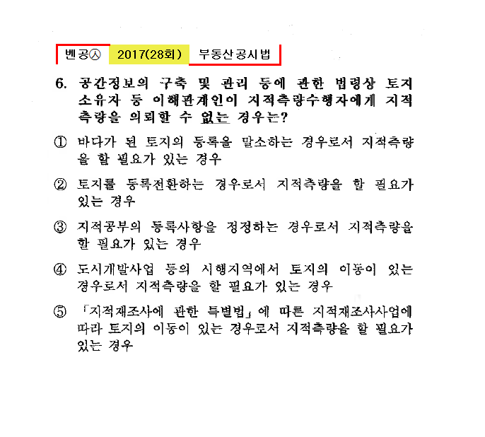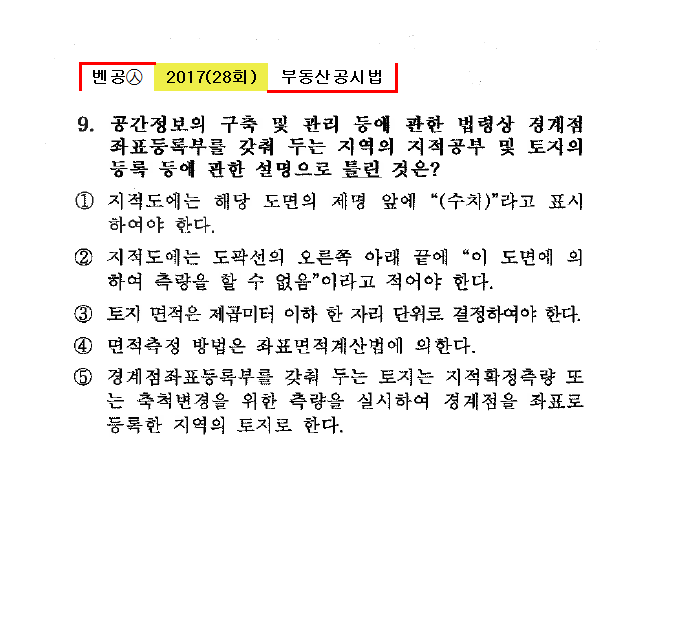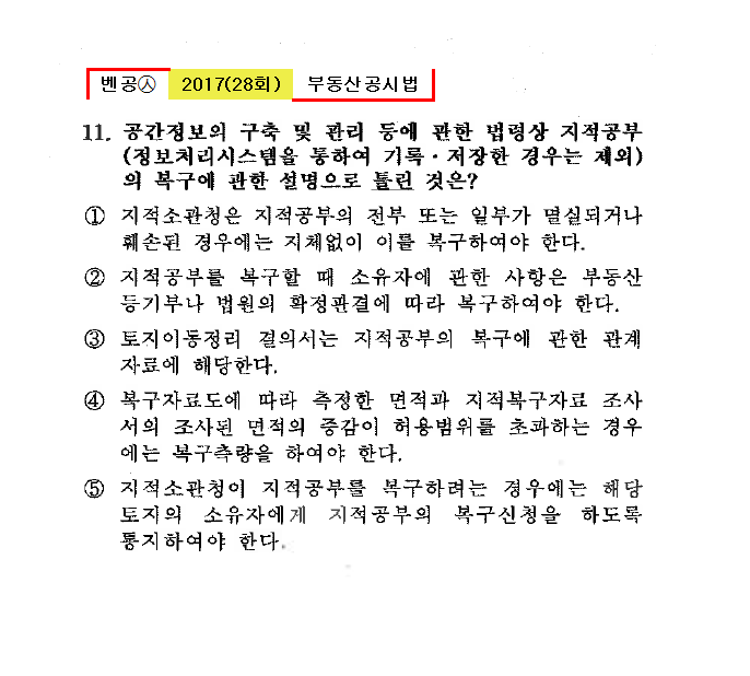 벤공㉦2017년 28회(1~12번) 공시법(지적)*기출총정리