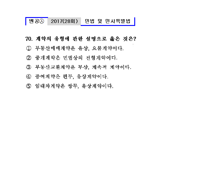 ③ 부동산교환계약은 무상, 계속적 계약이다.㉦유상, 일시적 계약
