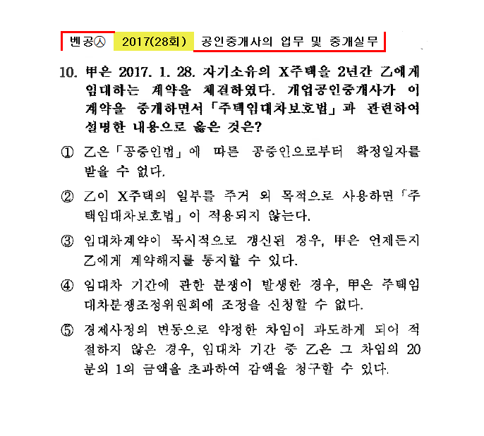 벤공㉦2017년 28회(1~10번) 중개사법*기출총정리