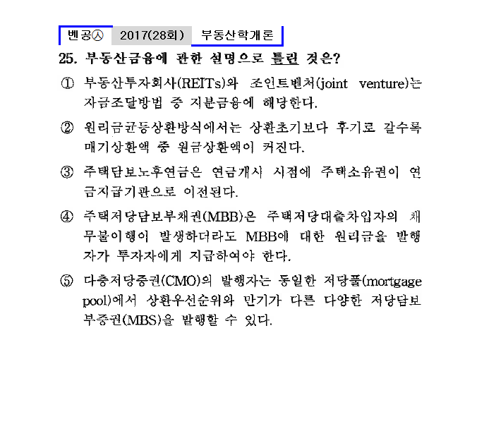 28회㉦25. 부동산금융에 관한 설명으로 틀린 것은?