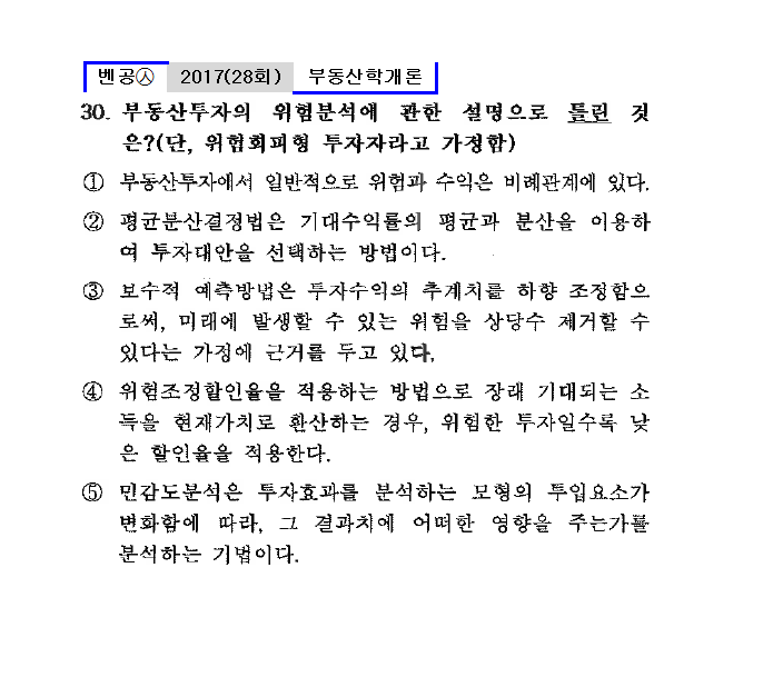 | 벤공㉦2017년 28회(11~20번) 부동산학개론*기출총정리 (0) | 2019.12.03 |