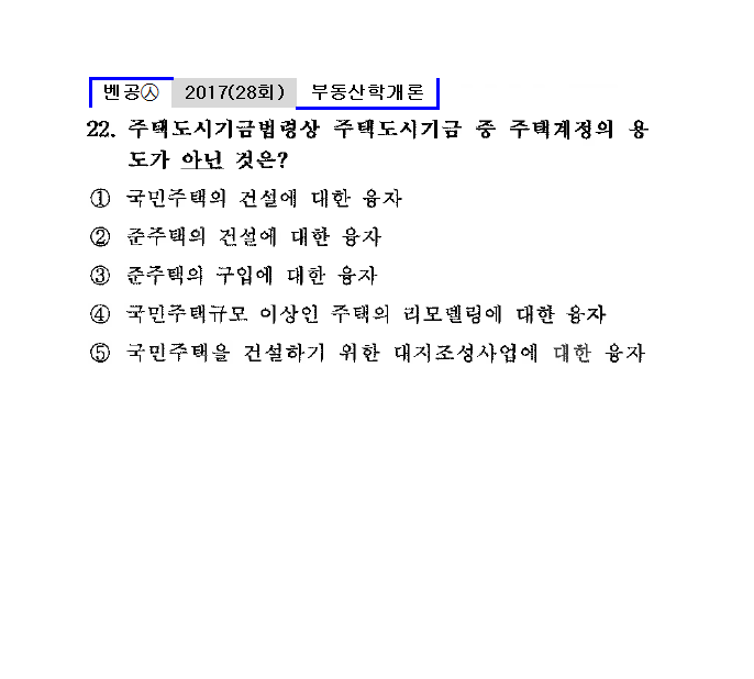 28회㉦22. 주택도시기금법령상 주택도시기금 중 주택계정의 용도가 아닌 것은?