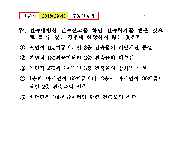 ⑤ 바닥면적 100제곱미터인 단층 건축물의 신축