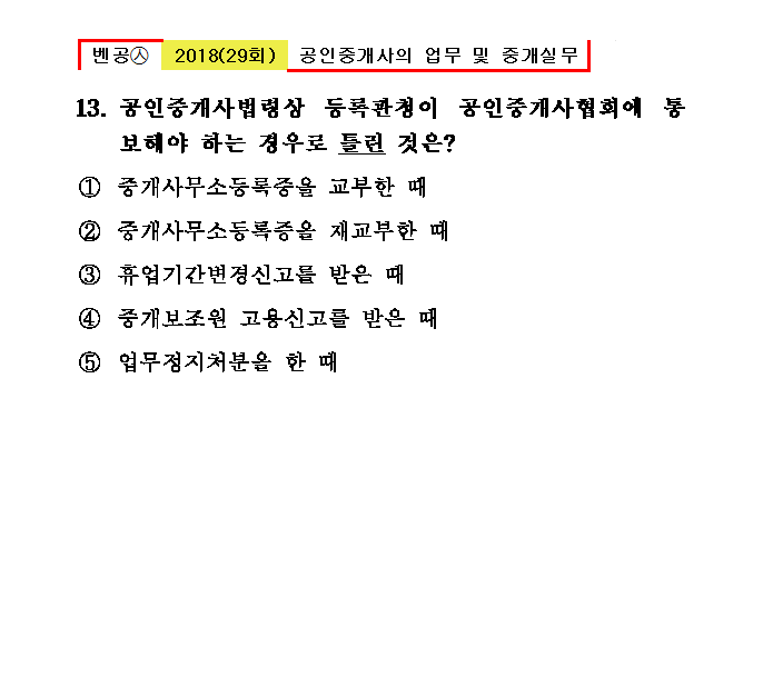 29회㉦13. 공인중개사법령상 등록관청이 공인중개사협회에 통보해야 하는 경우로 틀린 것은?