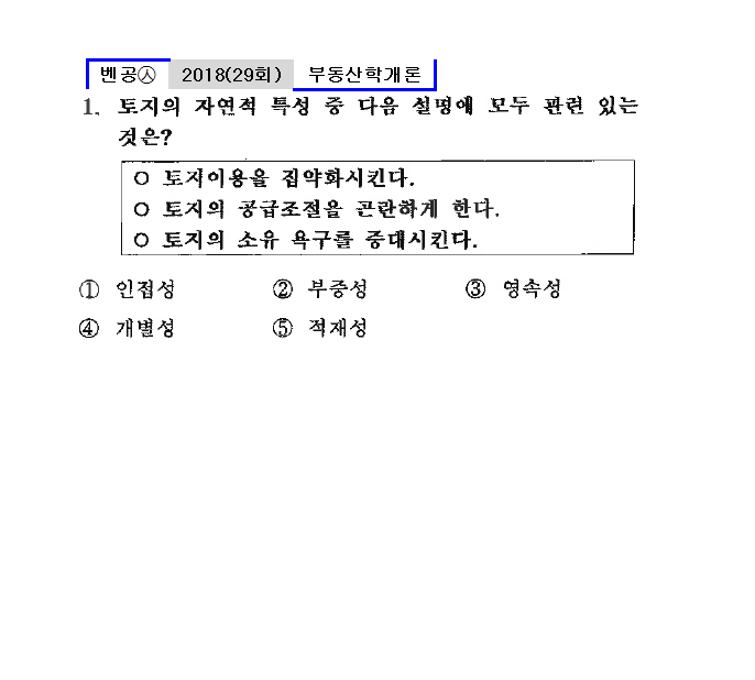 29회㉦1. 토지의 자연적 특성 중 다음 설명에 모두 관련 있는 것은?