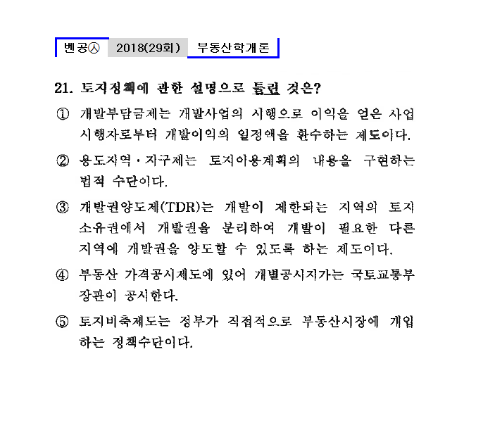 29회㉦21. 토지정책에 관한 설명으로 틀린 것은?