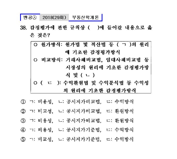 ● ㄱ: 비용성 ㄴ: 공시지가기준법 ㄷ: 수익방식
