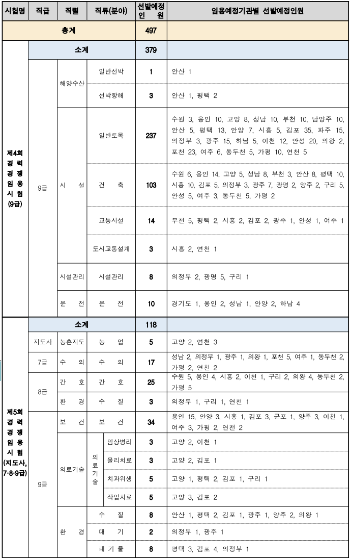 2021년도 제4회(9급) 및 제5회(지도사, 7·8·9급) 경기도 지방공무원 경력경쟁 임용시험 시행계획을 다음과 같이 공고합니다.