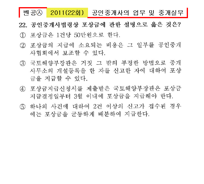 벤공㉦2011년 22회(21~40번)중개사법*기출총정리