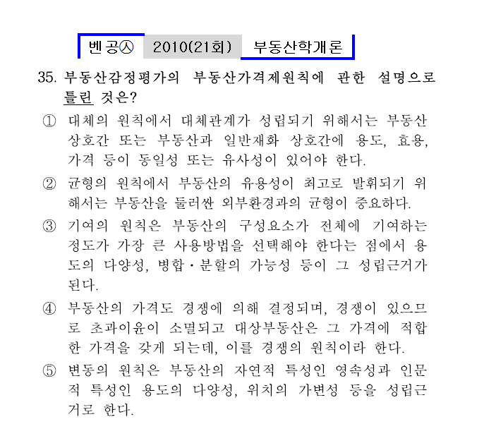 21회㉦35. 부동산감정평가의 부동산가격제원칙에 관한 설명으로 틀린 것은?