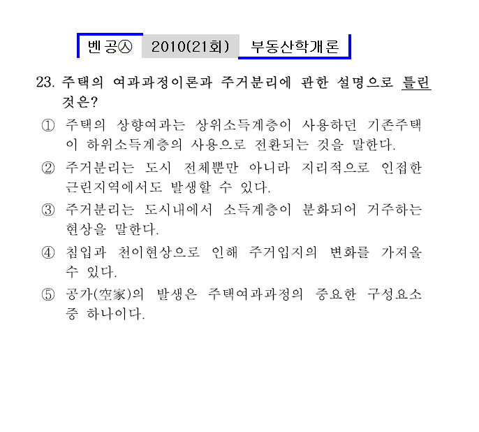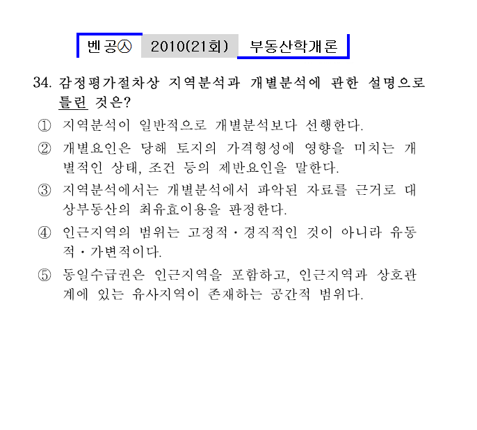 벤공㉦2010년 21회(21~40번)부동산학개론*기출총정리