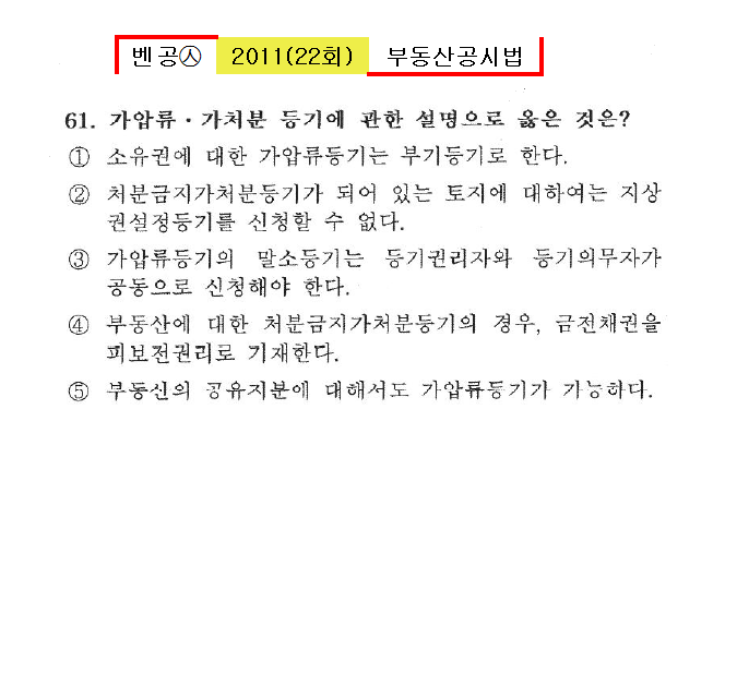 벤공㉦2011년 22회(53~64번)공시법(등기)*기출총정리