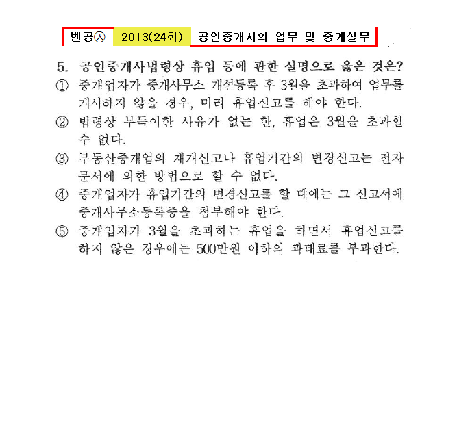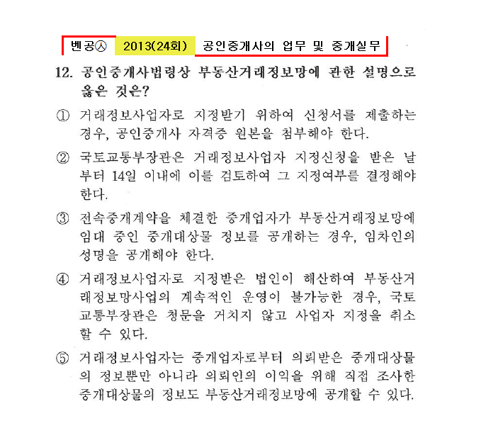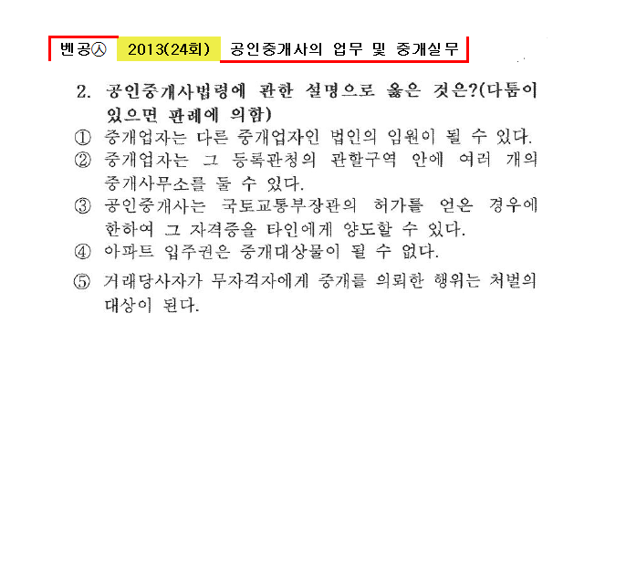 벤공㉦2013년 24회(1~20번)중개사법*기출총정리