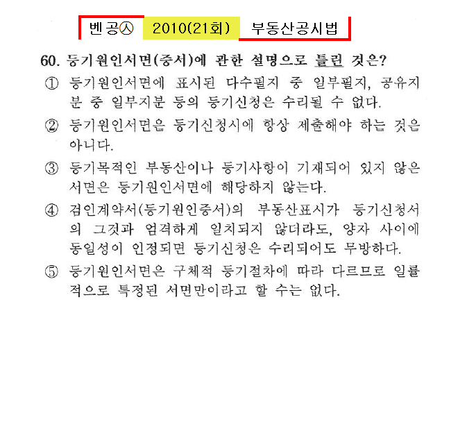 벤공㉦2010년 21회(53~64번)공시법(등기)*기출총정리