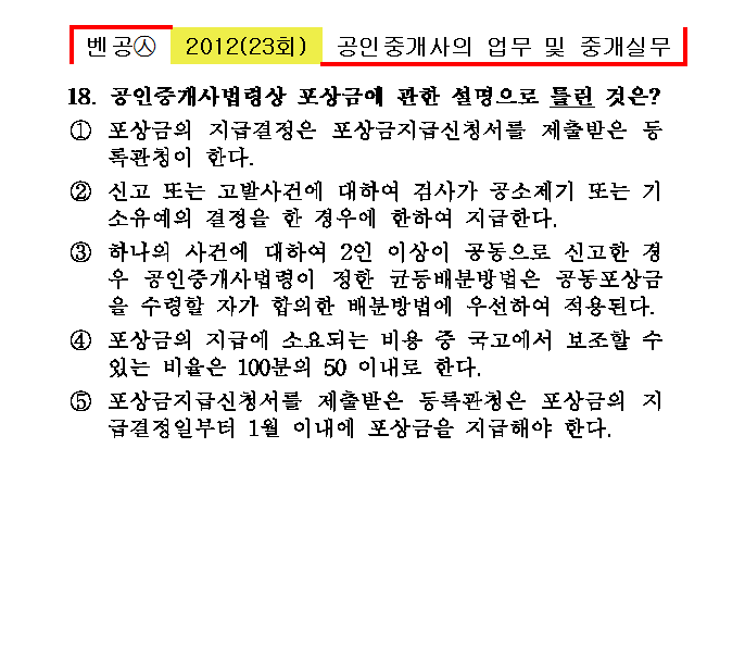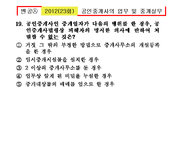 벤공㉦2012년 23회(1~20번)중개사법*기출총정리