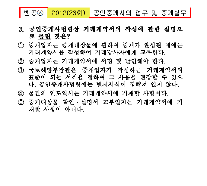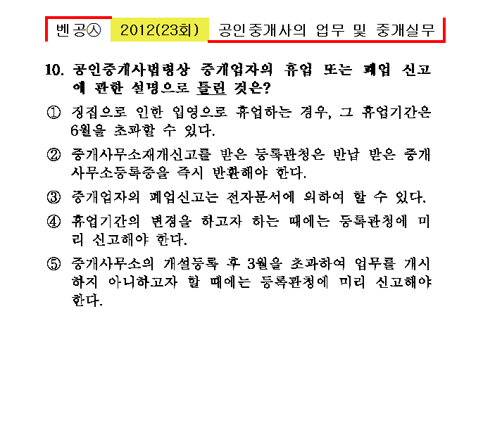 벤공㉦2012년 23회(1~10번)중개사법*기출총정리