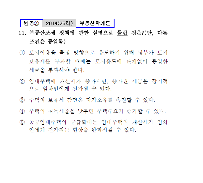 25회㉦11. 부동산조세 정책에 관한 설명으로 틀린 것은?(단, 다른 조건은 동일함)