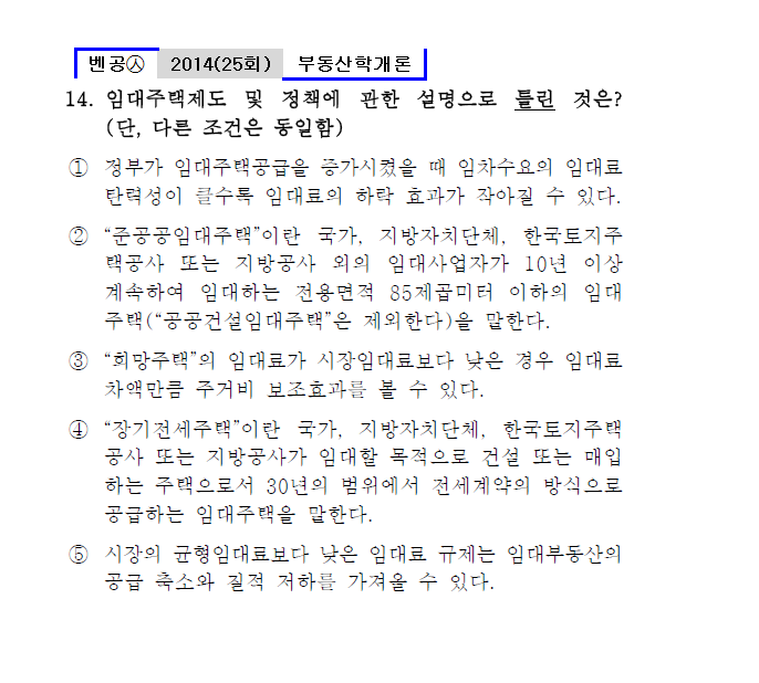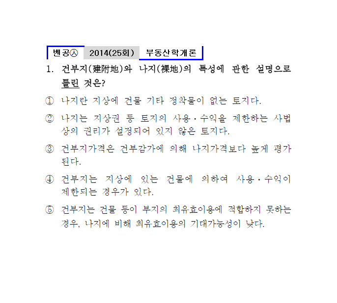 벤공㉦2014년 25회(01~20번)부동산학개론*기출총정리