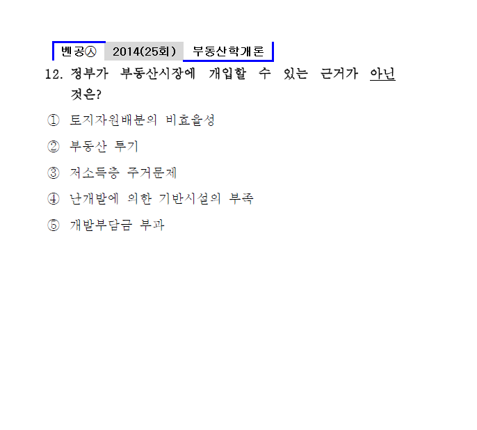 25회㉦12. 정부가 부동산시장에 개입할 수 있는 근거가 아닌 것은?