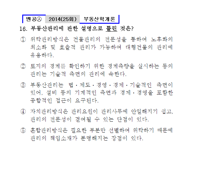 25회㉦16. 부동산관리에 관한 설명으로 틀린 것은?