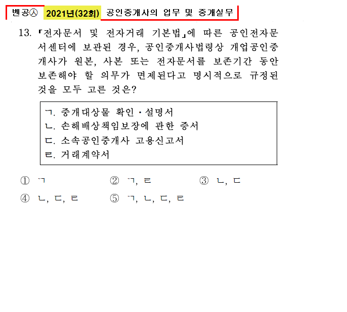 벤공㉦2021년 32회(11~20번) 부동산중개사법_기출