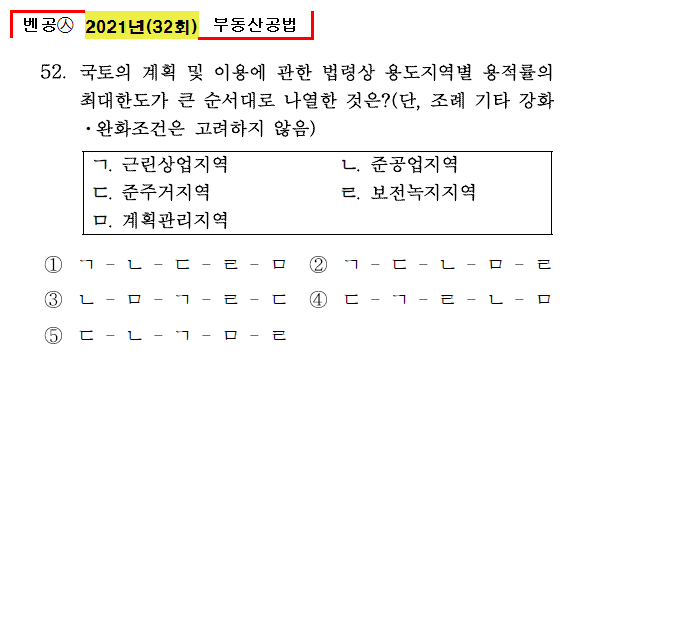 벤공㉦2021년 32회(51~60번) 부동산공법_기출