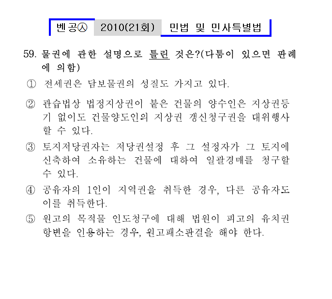 벤공㉦2010년 21회(41~60번)민법및민사특별법*기출총정리