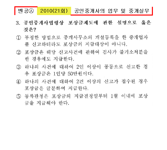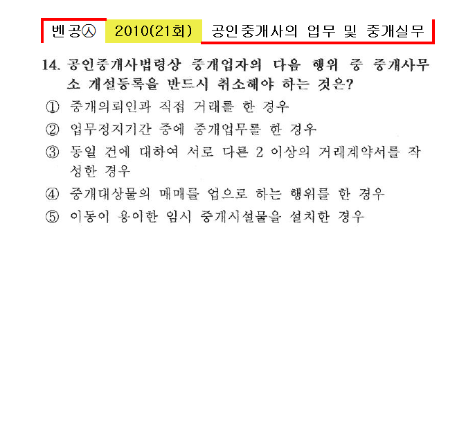 벤공㉦2010년 21회(1~20번)중개사법*기출총정리