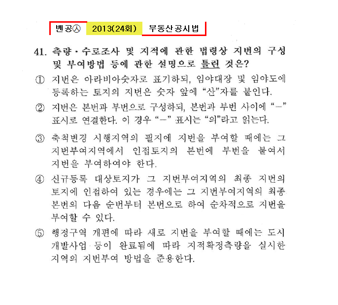 벤공㉦2013년 24회(41~52번)공시법(지적)*기출총정리
