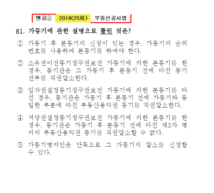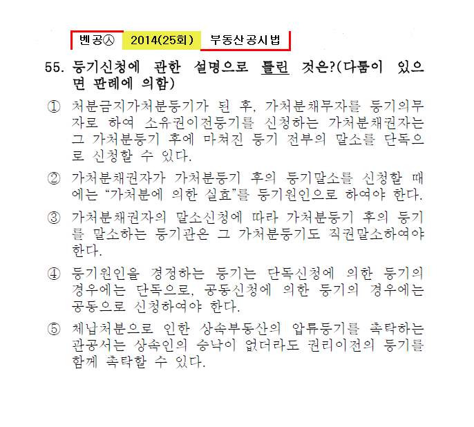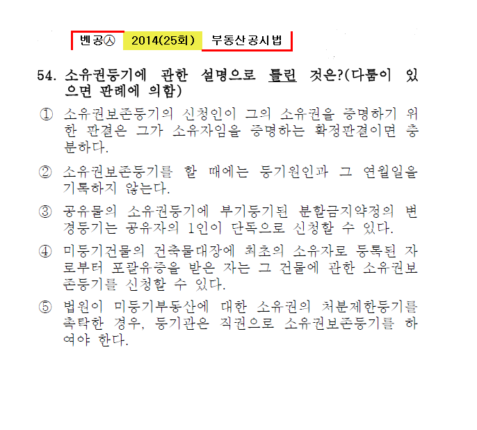 벤공㉦2014년 25회(53~64번)공시법(등기)*기출총정리