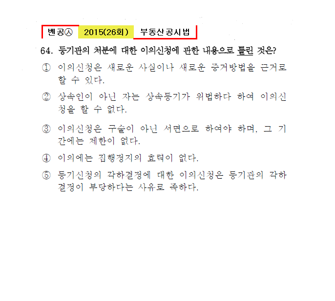 벤공㉦2015년 26회(53~64번) 공시법(등기)*기출총정리