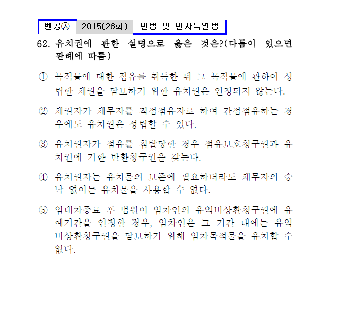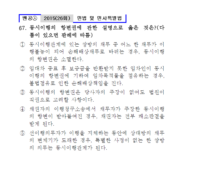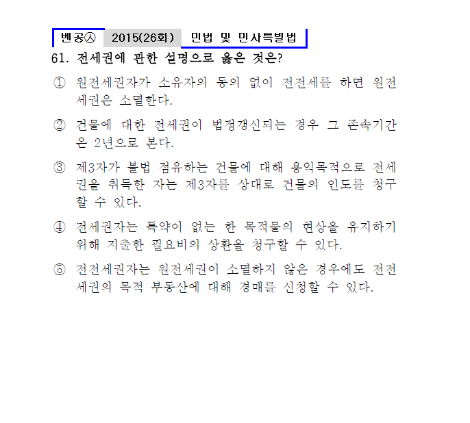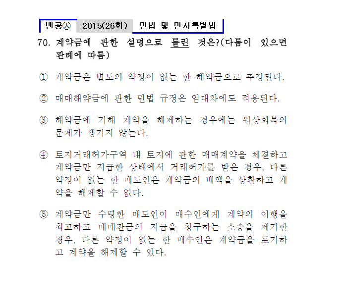 벤공㉦2015년 26회(61~70번) 민법 및 민사특별법*기출총정리