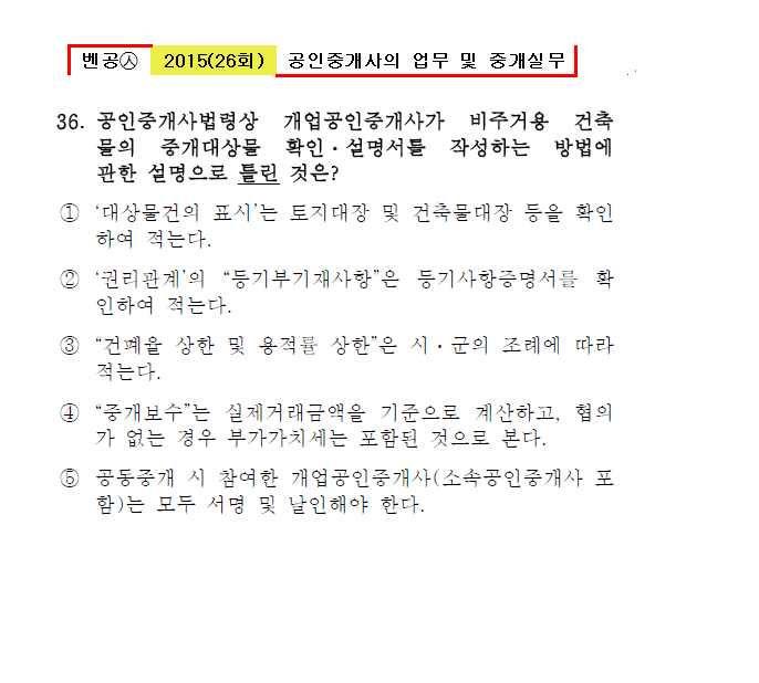 벤공㉦2015년 26회(31~40번) 중개사법*기출총정리