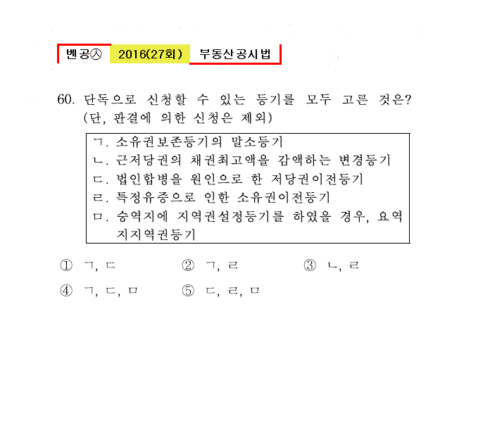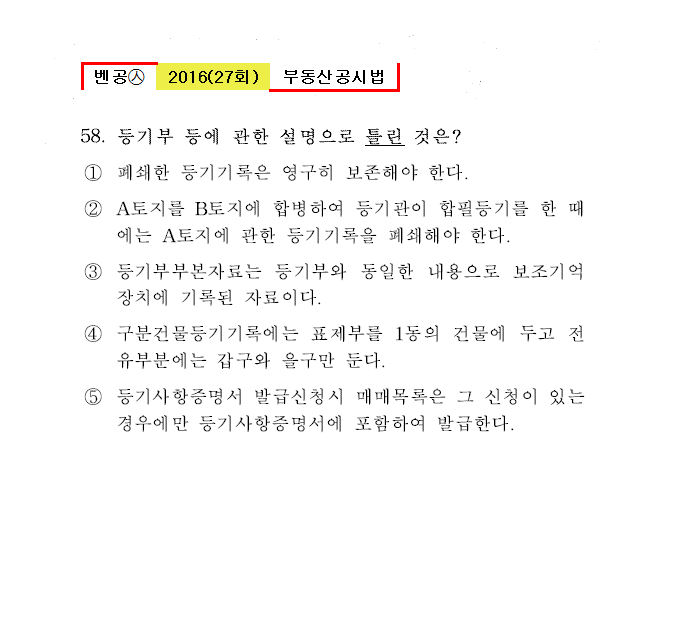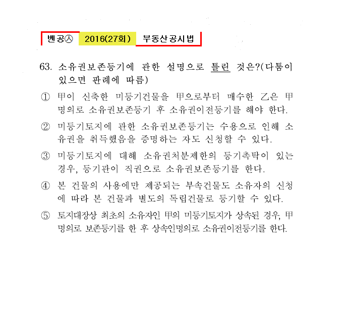 벤공㉦2016년 27회(53~64번) 공시법(등기)*기출총정리