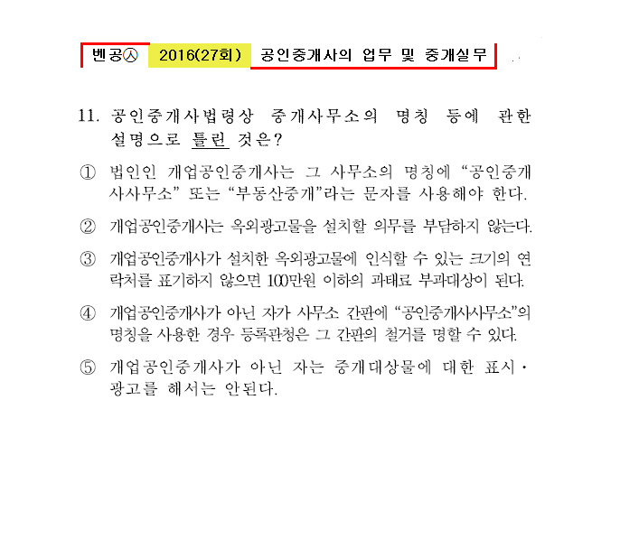 벤공㉦2016년 27회(11~20번) 중개사법*기출총정리