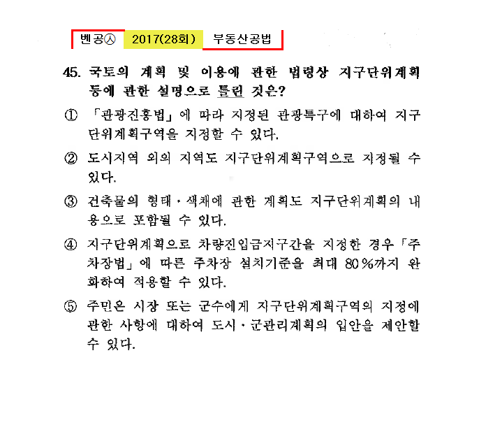 28회㉦46. 국토의 계획 및 이용에 관한 법령의 규정 내용으로 틀린 것은?