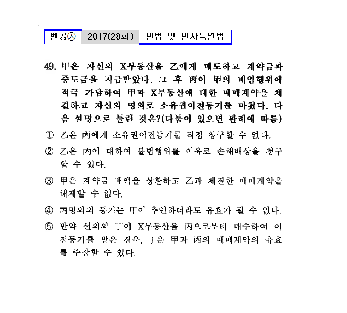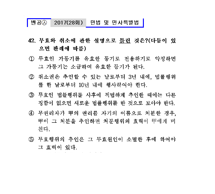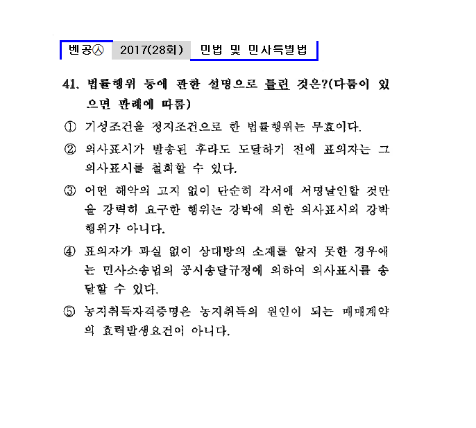 벤공㉦2017년 28회(41~50번) 민법 및 민사특별법*기출총정리