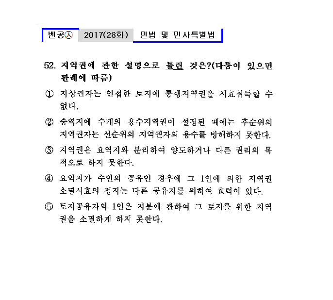 28회㉦52. 지역권에 관한 설명으로 틀린 것은?(다툼이 있으면 판례에 따름)