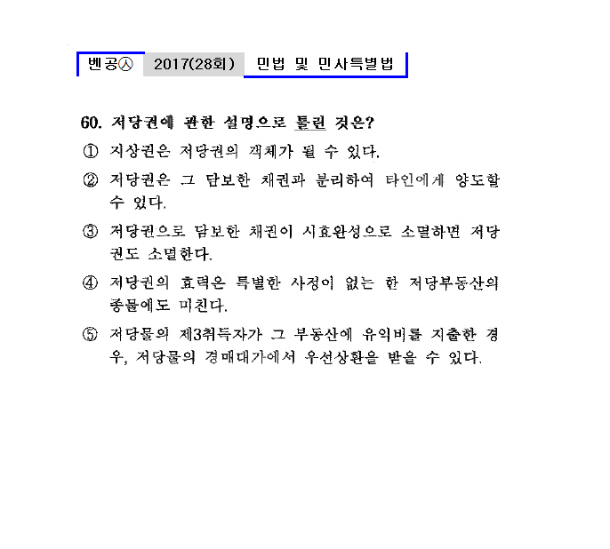 벤공㉦2017년 28회(51~60번) 민법 및 민사특별법*기출총정리