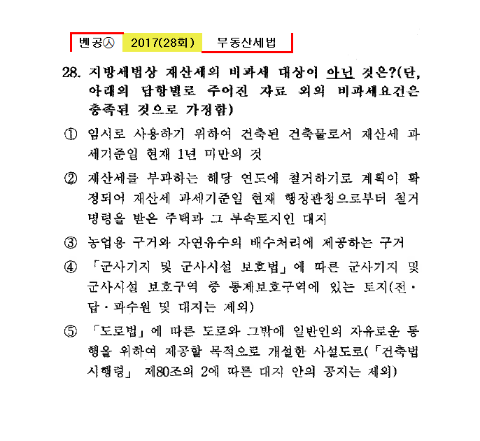 28회㉦28. 지방세법상 재산세의 비과세 대상이 아닌 것은?(단, 아래의 답항별로 주어진 자료 외의 비과세요건은 충족된 것으로 가정함)