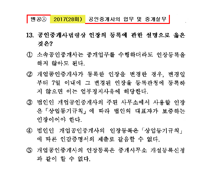 28회㉦13. 공인중개사법령상 인장의 등록에 관한 설명으로 옳은 것은?
