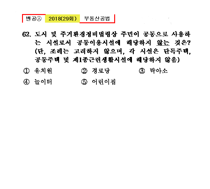 29회㉦62. 도시 및 주거환경정비법령상 주민이 공동으로 사용하는 시설로서 공동이용시설에 해당하지 않는 것은?(단, 조례는 고려하지 않으며, 각 시설은 단독주택, 공동주택 및 제1종근린생활시설에 해당하지 않음)