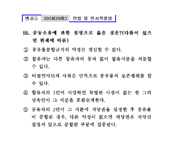 벤공㉦2018년 29회(51~60번) 민법 및 민사특별법*기출총정리